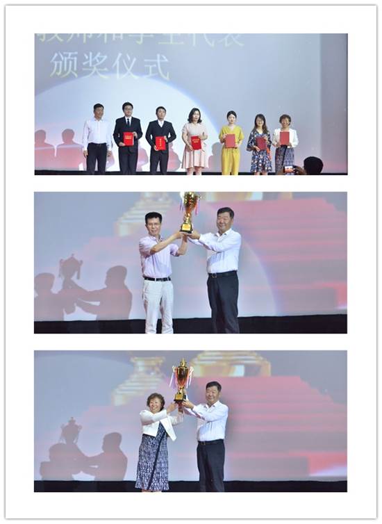 活动开始,主持人邀请王化深校长为2018年省级以上获省级以上奖项的优秀教师颁奖,并邀张军学院长及马玉玲主任与王化深校长一起为我们展示属于海滨之夜的荣誉奖杯。在熠熠生辉的奖杯下,参赛选手们愈加勇往直前。