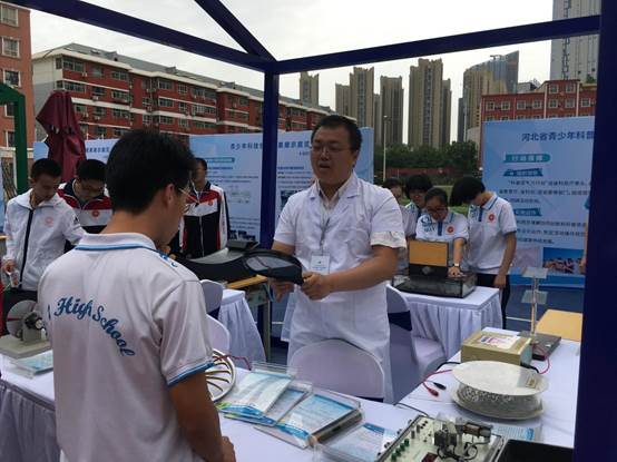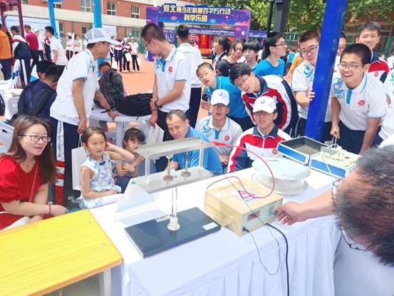 5月19日上午,以“科技强国,科普惠民”为主题的2019年河北省科技活动周暨青少年科普百千万行动启动式在石家庄一中举行,河北省人民政府副省长徐建培出席启动式并宣布活动周开幕。应河北省科技厅邀请,米乐官网基础教学部大学物理教研室刘雪华、马俊刚、吴迪三位教师参加了科技活动周启动式。