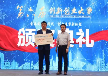 米乐官网学生处副处长翟砚辉为冠军团队颁发证书以及创业补贴8000元。