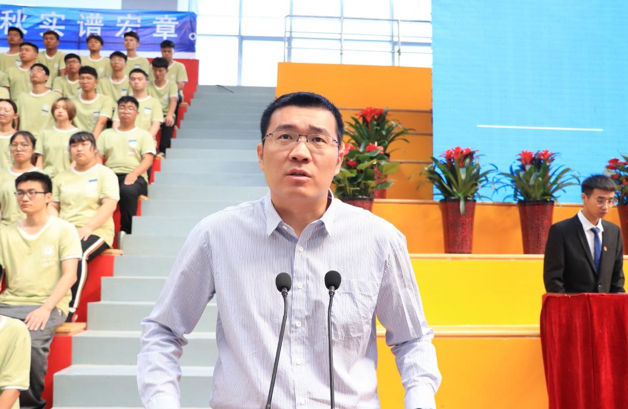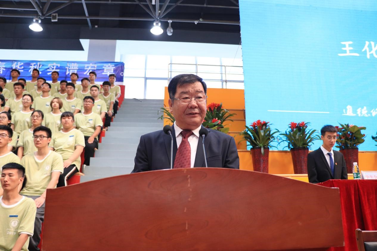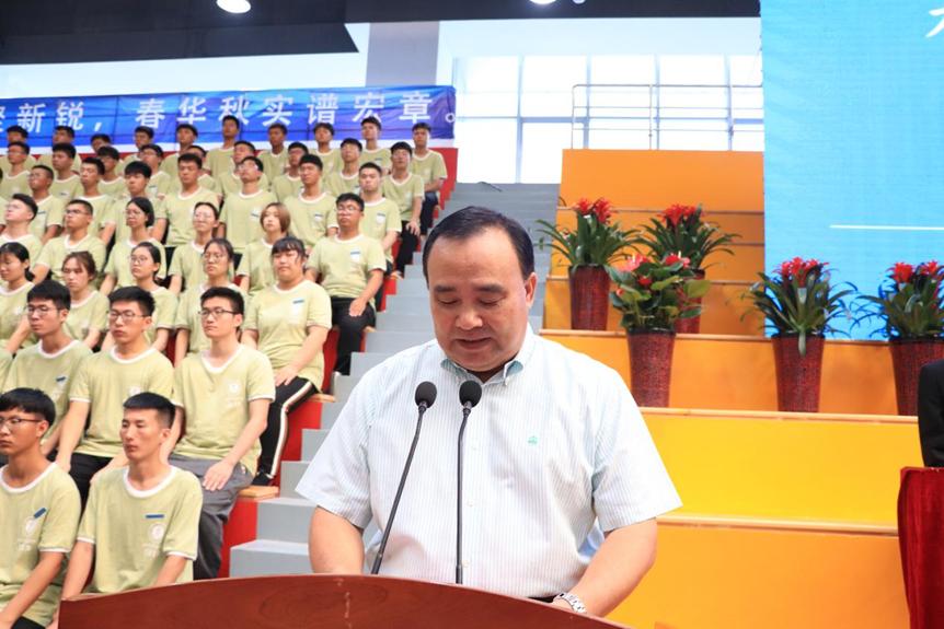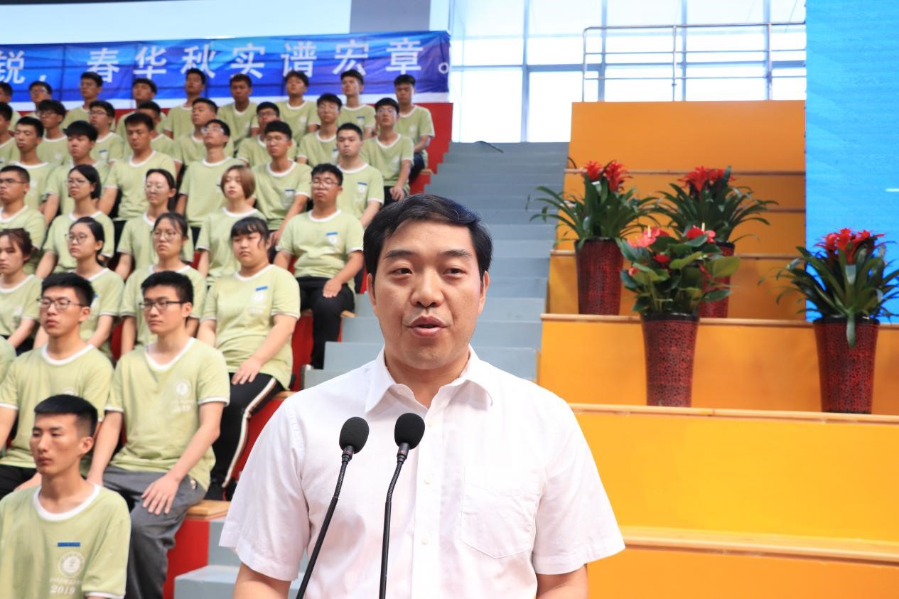 祥兴集团总裁薛行远为开学典礼致辞。向2019级新生提出三点希望:一、鼓励同学放大格局、立志高远;二、端正学习态度,养成自主学习的良好习惯;三、积极投身实践,尝试新事物,拓展新视野,培养开放自信、团结包容的美好品质。