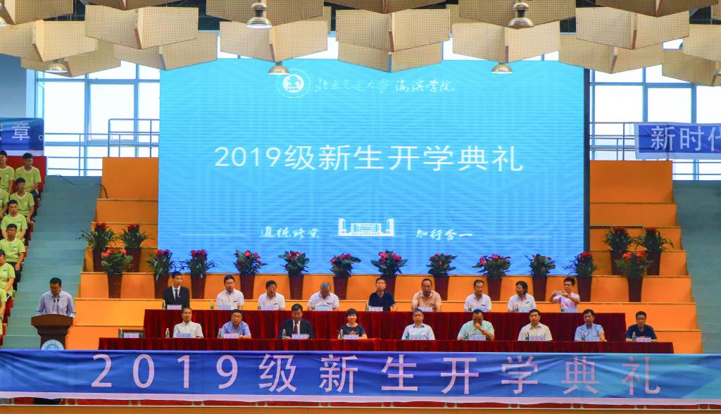9月6日上午8点,米乐官网2019级新生开学典礼在海滨体育馆举行。出席本次开学典礼的有北京交通大学副校长张星臣,黄骅市人民政府副市长张桂云,祥兴集团总裁薛行远,我院院长王化深,党委书记、副院长魏旺强,副院长、副书记张长铎,副院长徐爱国以及学校各院系的负责人和教师代表。本次典礼由我院党委副书记魏炜主持。