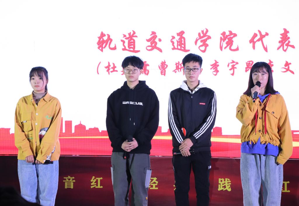 第一轮个人选手比赛环节中,陈文博、孙嘉程、张皓辰同学带来的《辛亥革命》《血色湘西》《红海行动》带领大家回到战火纷飞的岁月;王克琦同学的《无问西东》告诉大家每个人都会有自己坚定的选择;薛纪辰、王建宁同学的《那年那兔那些事儿》《智取威虎山》呈现出新中国成立以来发生的重要历史事件,表现出中国军队在保卫百姓幸福时的机智与勇敢。与此同时,团队比赛中土木建筑工程学院代表队与外国语学院代表队的《大人物》《功夫熊猫》给大家带来两个不同人物的励志故事;轨道交通学院代表队与计算机与信息技术学院代表队的《烈火英雄》《唐山大地震》展现出中国消防员不怕牺牲的精神与一位母亲面对生死抉择的艰难时刻;十星组合的《人民的名义》带大家走进一场阴云密布的官场风云。
