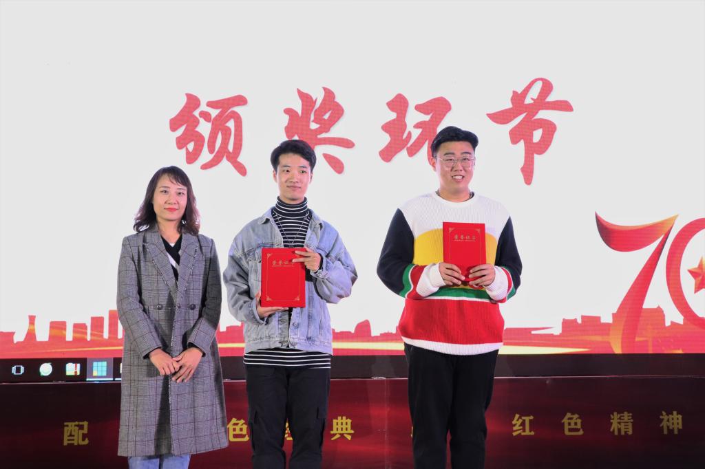 黄骅人民广播电台主播王璐为一等奖获得者——王建宁同学和十星组合颁奖