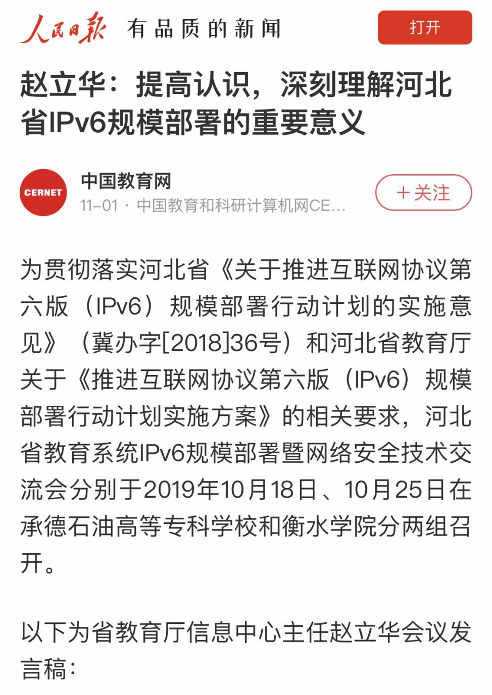 10月25日,河北省教育系统IPv6规模部署暨网络安全技术交流会在衡水学院召开。本次会议由河北省教育厅主办,会上,米乐官网党委理论学习中心组上网信课的做法获得河北省教育厅肯定。