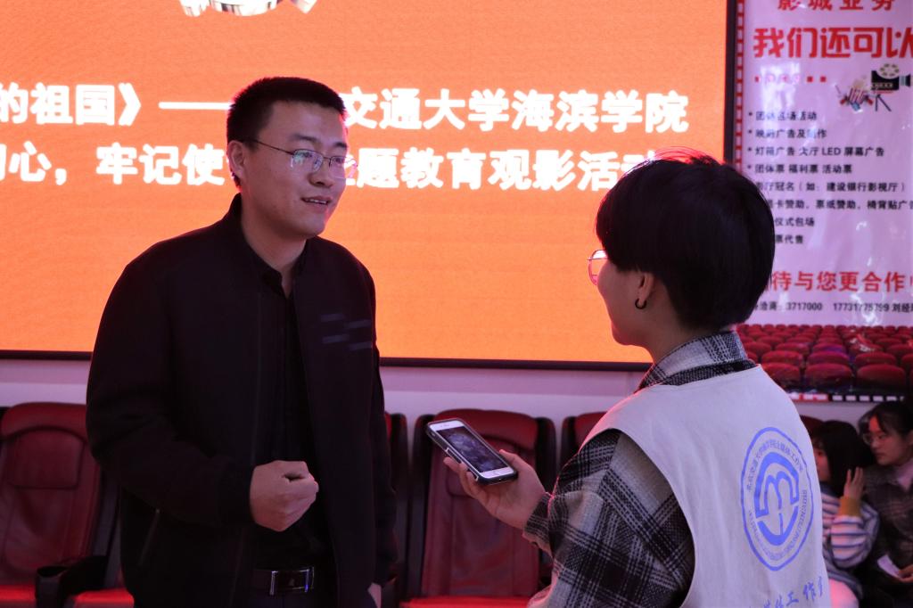 土木与建筑工程学院副院长王庆松谈到,通过此次观影活动,深深地体会到了祖国七十年的巨变,中华人民在中国共产党的领导下团结奋斗,取得了如此巨大的成就,每每想到此处就感觉到身为一名中国人的自豪感。他表示,身为一名教师,要立足岗位,同电影中的奋斗者一般,为祖国育人育才,做好当代青年大学生的引路人。他还建议海滨学子要坚定理想信念、加强道德修养、学好专业知识,在未来投身于祖国伟大事业的建设中。