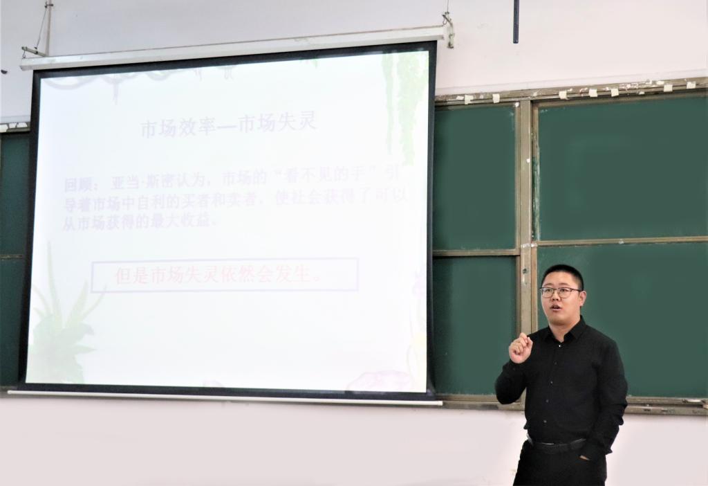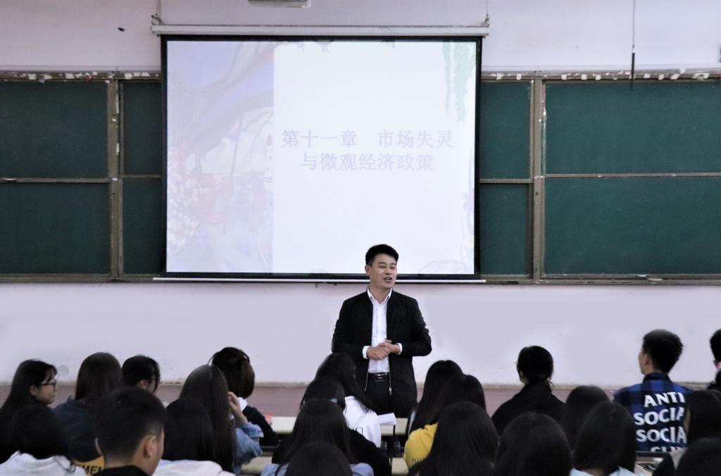 经济管理学院教师宋宝琳以亚当·斯密提出“看不见的手”的观点引出本节课的主题——“市场失灵与微观经济政策”,并以幽默的小故事为例说明市场循环的失灵问题,将生活中所遇到的事情引出外部性的概念。宋老师引经据典、结合市场经济、深度剖析社会现象,鞭辟入里地指出市场失灵与社会的紧密关联,折射出反垄断法的解决方案。他在课堂上积极与同学互动,使同学们进一步理解新的知识。