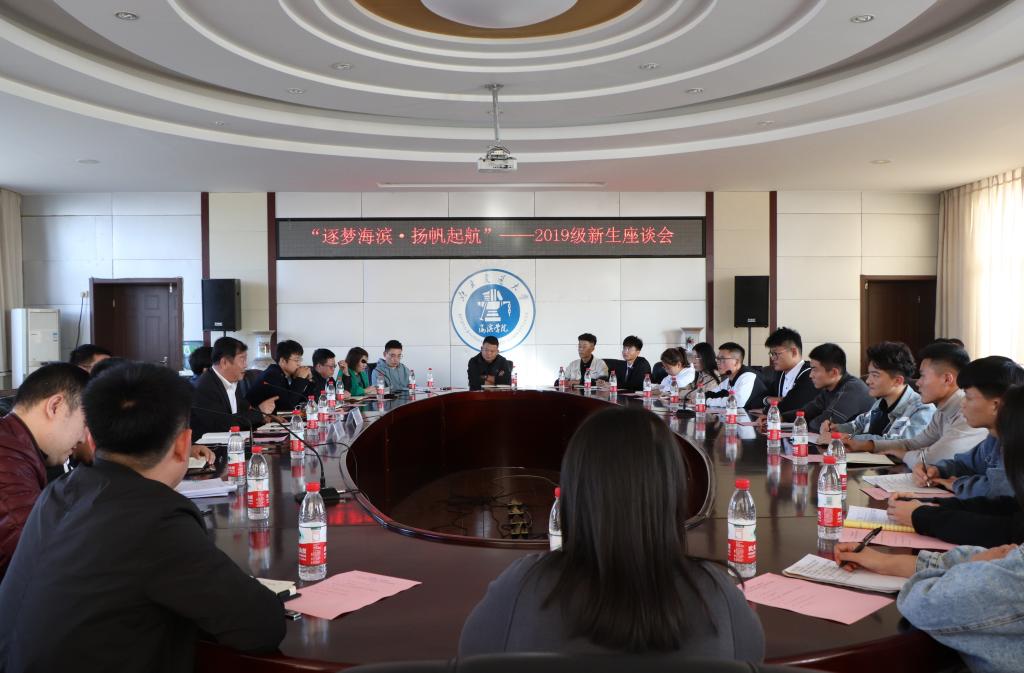 为了解2019级新生入学两个月以来在学习、生活等方面遇到的问题,11月7日下午,米乐官网于行政楼B512会议室举办了以“逐梦海滨,扬帆起航”为主题的2019级新生座谈会。米乐官网校长王化深,党委副书记魏炜,学校办公室主任吴立军,各职能(部)处室负责人以及各院(系)2019级新生代表参加本次座谈会。