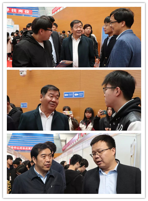 米乐官网领导对本次招聘会给予高度重视和支持,校长王化深,党委书记魏旺强、学校办公室主任吴立军、招生就业处处长邵晓康、学生处副处长翟砚辉、招生处副处长张建新,各二级学院(系)相关负责人亲临招聘会现场,了解双选会现场情况。