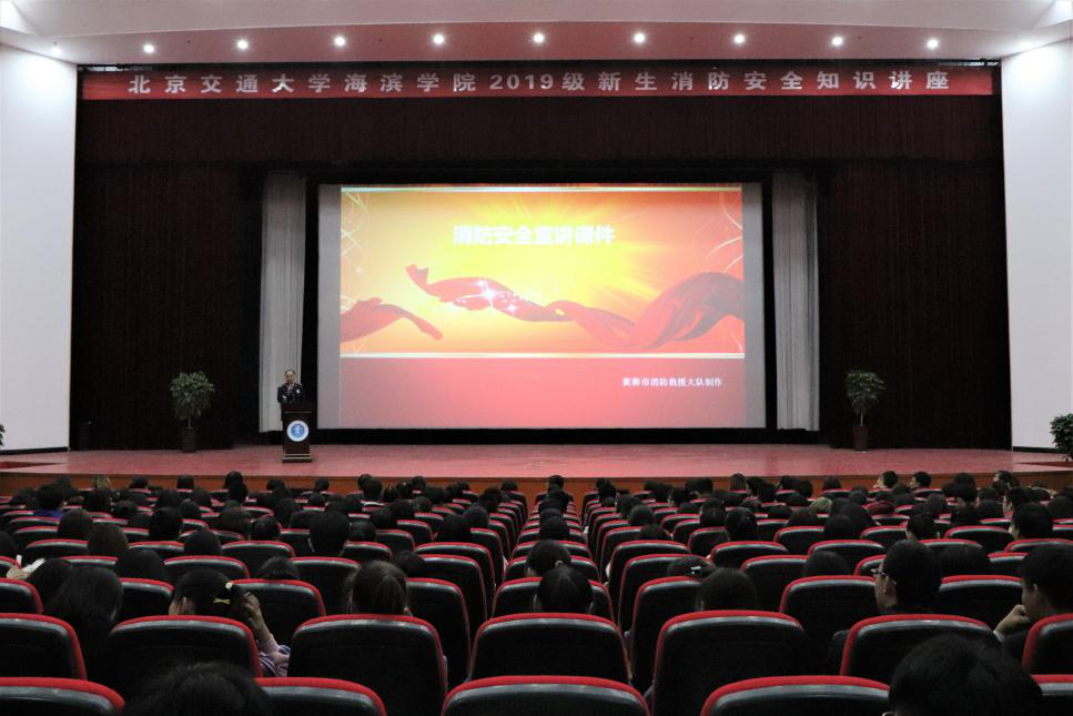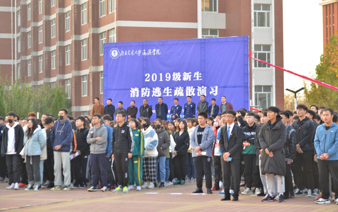 在参加此次活动的学生平安抵达指定地点之后,安全工作处处处长张海旺组织在场师生观看《北京交通大学海滨学院消防安全宣传片》。