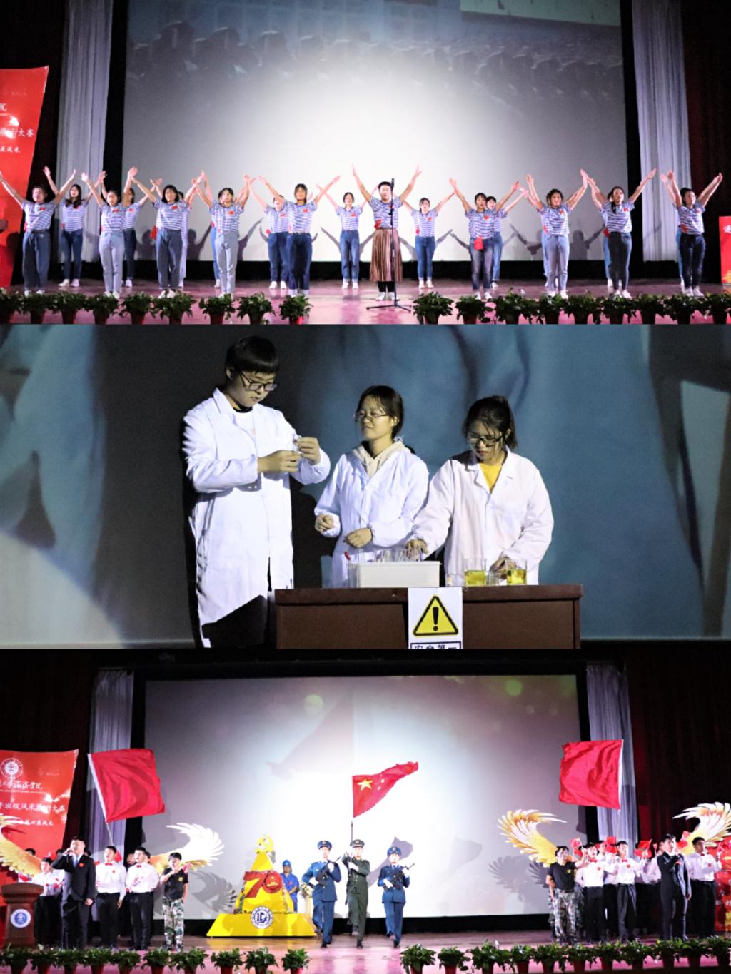 第一环节由班级代表结合视频对所在班级团队建设的发展情况进行展示。跳动的音符,动感的舞姿,商英1801班用活力和热情向大家展示着自己的芳华岁月;化工1801班现场做化学实验,演绎着化工人应有的姿态,愿用青春铸就华章,愿用热血谱写非凡人生;当紧握责任的船舵时,机械1802班一直都在坚守初心、砥砺前行,只为机械腾飞尽显光辉。