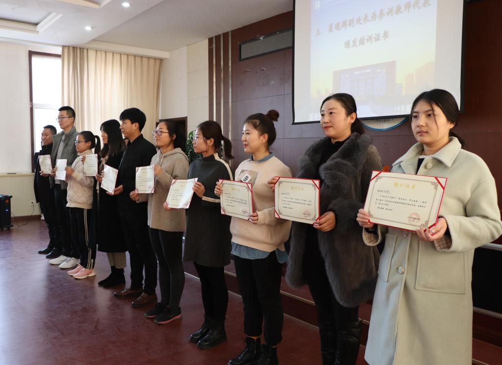 学生处副处长翟砚辉为参训学员教师代表颁发结业证书