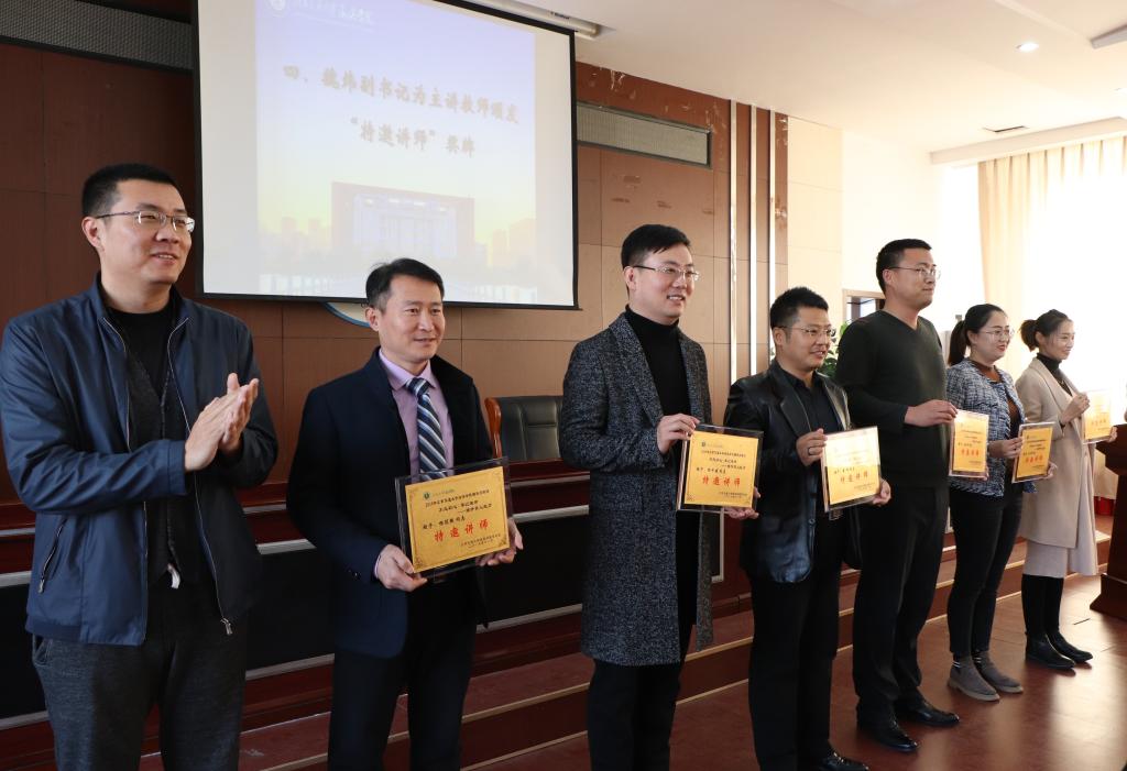 党委副书记魏炜为主讲教师代表颁发荣誉奖章