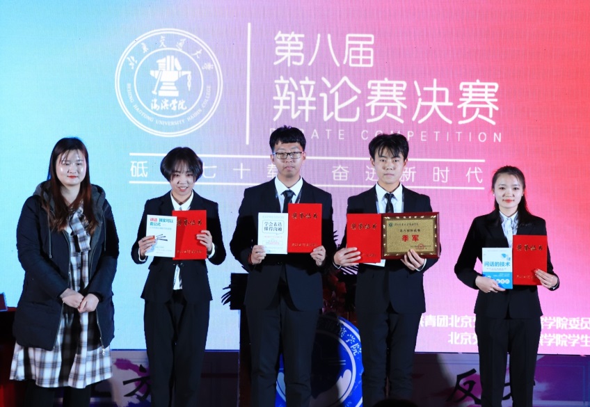 经过两轮激烈的辩论,电子与电气工程学院夺得桂冠,外国语学院荣获亚军,计算机与信息技术学院获得季军,其中自动化1702班李嘉琦在众多辩手中脱颖而出,获得“最佳辩手”称号。