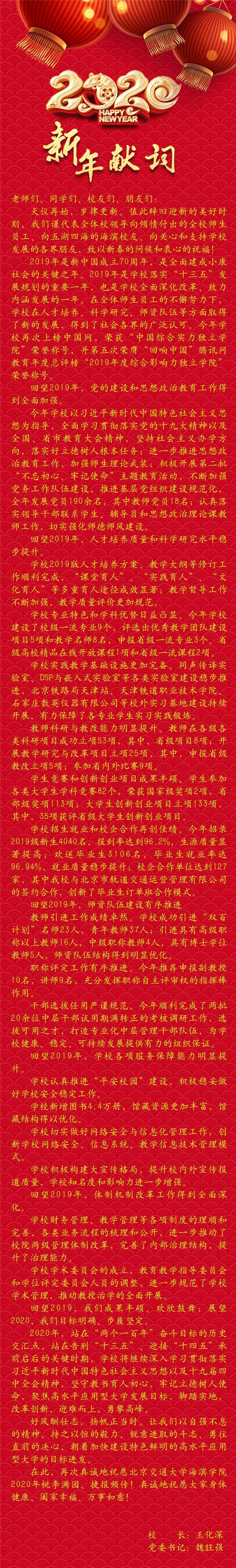 北京交通大学海滨学院2020年新年献词