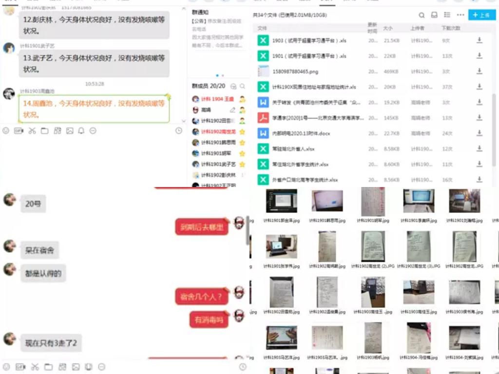 一场疫情席卷全国,全校师生隔离在家。虽然师生暂时无法见面,但是隔屏不隔爱,抗“疫”过程中,学院辅导员队伍坚守岗位,及时向学生传达疫情防控精神,逐个问候湖北籍学生的身心状况,抚慰部分学生焦虑的情绪,用细心和责任心架起家校抗“疫”的桥梁,用耐心和爱心托起学生的信念和希望,用实际行动落实各项防控工作,诠释学生工作队伍的使命与担当,为打赢这场疫情防控阻击战贡献着自己的力量!为此,计算机与信息技术学院全体辅导员迅速启动“战时”模式,把对抗疫情当作这个春节的特殊主题,为学生守好“责任田”,护好“一院人”。