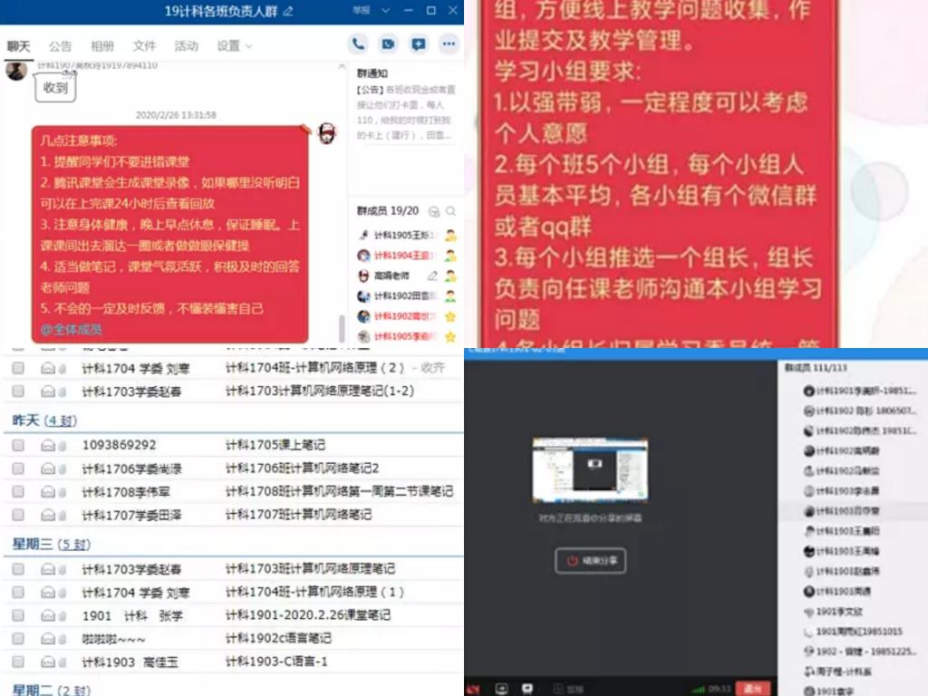 2月24日,米乐官网贯彻落实“停课不停教,停课不停学”,正式开始网上授课,高娟老师统计了能正常参与网课学习的学生名单,询问学生们网课学习是否有困难,征求学生们对网课学习的建议,并通过群投票的方式掌握学生们对网课学习的倾向。为了更好地学习,高娟老师为所在学院2019级所有班级划分学习小组,并将小组名单发给相关任课老师。高娟老师表示,要充分发挥线上实时互动优势,跨越空间障碍,利用线上平台沟通。尤其密切关注疫情严重地区的学生心理状态的变化,适时为学生敞开心扉,答疑解惑,提升学生心理“免疫力”,做学生背后的强大后盾。