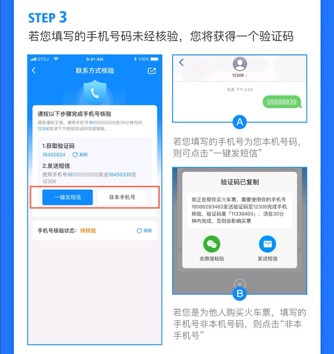 自2月1日起,购票人须提供每一名乘车旅客本人使用的手机号,方可购票。为提高乘车人手机号码的真实有效性,须对乘车人手机号码进行核验。