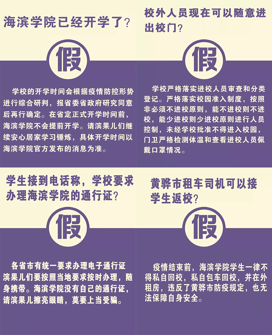 网传信息皆为虚假消息,疫情至今,学校仍处于封校状态,具体返校时间,需要根据疫情情况和国家要求来定,望同学们提高辨别是非的能力。