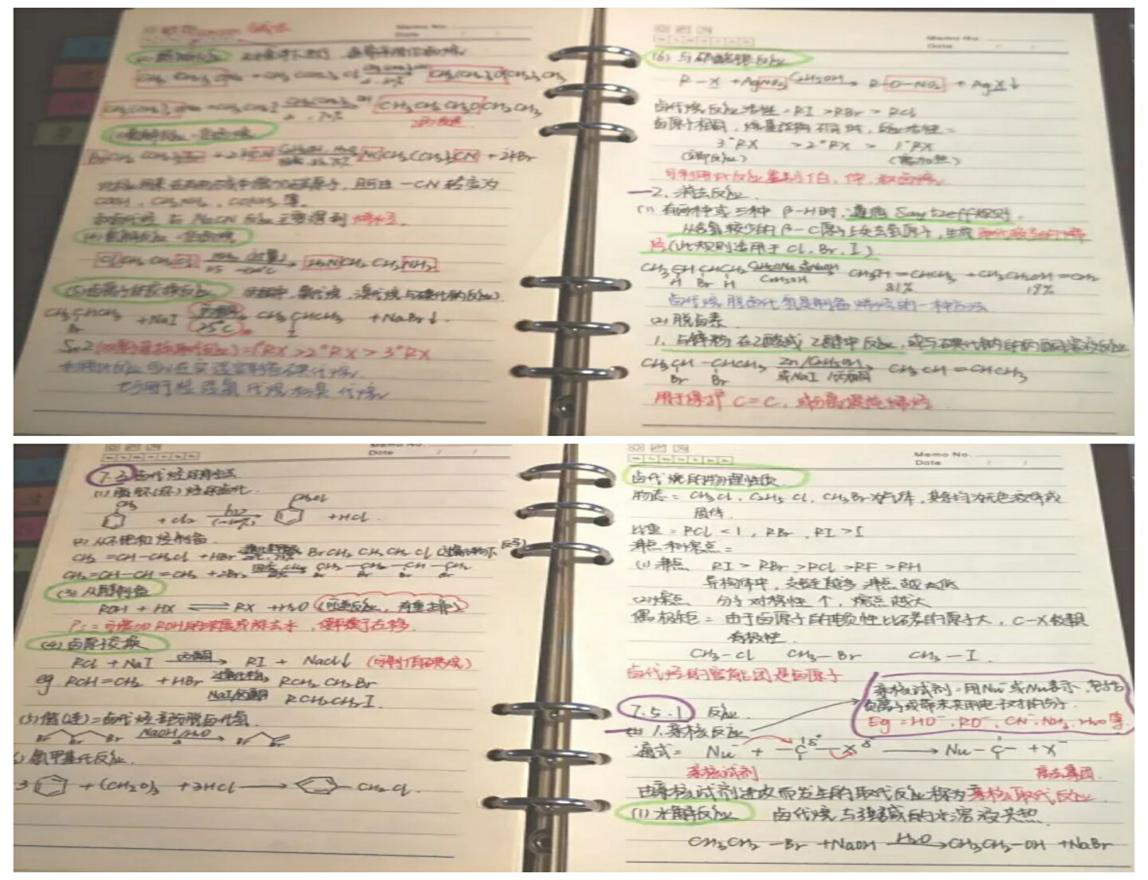 开展笔记分享活动后,化工系学生纷纷积极参与、踊跃晒照。线上授课已进入第八周,化工学子对于课堂依旧热情高涨,认真地记录每一节课的笔记。他们认为,笔记不但承载着老师们的授课精华,而且可以记录日常的学习成果。一份好的课堂笔记不仅能帮助他们巩固课堂所学知识,还可以端正学习态度。