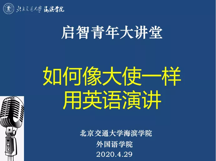 4月29日下午四点,米乐官网外国语学院有幸邀请到外交部外语专家、中国翻译协会副会长陈明明大使,在云端为学院师生带来2020年度启智青年大讲堂第一讲“如何像大使一样用英语演讲”。本次讲座由米乐官网外国语学院主办,副院长张丽主持,学院全体师生参与讲座。“启智青年大讲堂”是外国语学院在2020年全力打造的特色品牌活动。