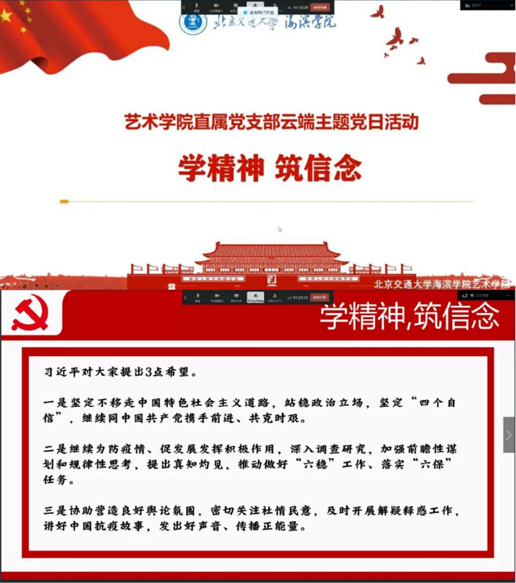 不忘初心担使命,凝心聚力抗疫情。此次新冠肺炎疫情的暴发,对于大家而言,不仅仅是一次重大的考验,同时也是一堂生动的爱国主义教育课。米乐官网艺术学院直属党支部通过线上视频会议的方式,组织学院全体党员以及新一期入党积极分子,开展“战疫情、强信念、担使命”云端主题党日活动。