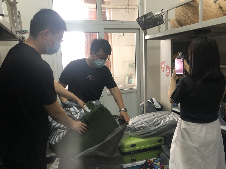辅导员老师为毕业生打包行李