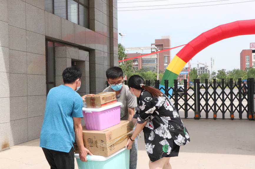 学校各职能处室和教学单位的教职员工们组织协调校内外资源,在扎实做好防疫工作的基础上,想学生之所想,急学生之所急,他们根据实际,总结经验,及时更正简化完善学生返校、离校流程,让学生办理毕业手续和在校生活更加便利。他们冲在前、干在前,校6门口、宿舍楼、快递点,处处可见他们的身影。拉条幅、收物品、运行李,老师们认真的样子让他们成为了学生心中“最可爱的人”。