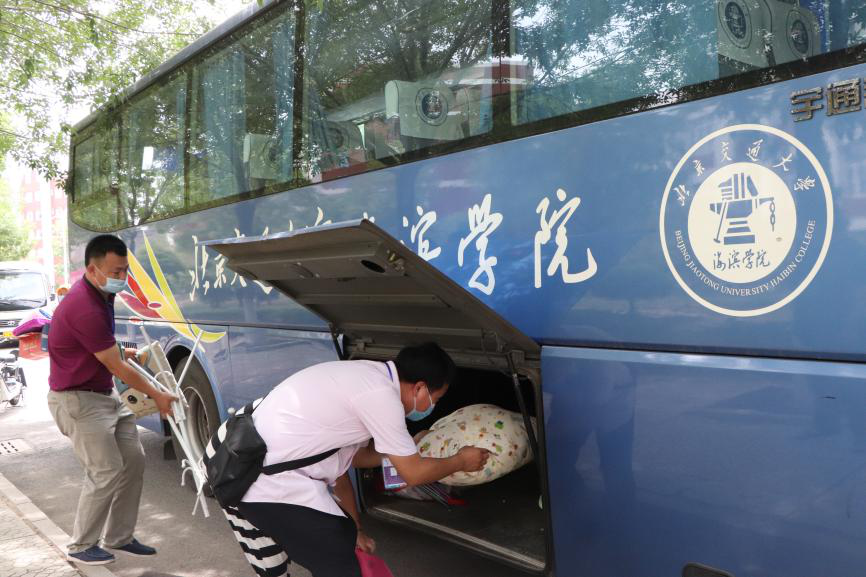 学校校车为学生转运行李