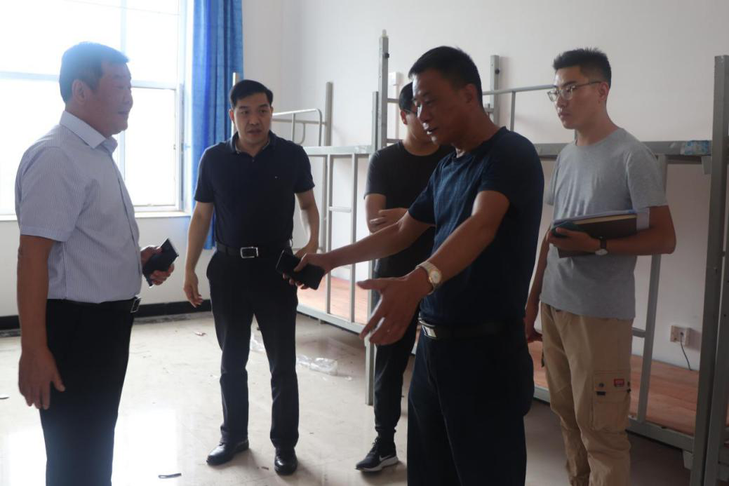 为做好学生开学前的准备工作,营造良好的校园氛围,8月25日,米乐官网校长王化深,党委书记魏旺强,常务副校长、党委副书记张长铎,副校长薛君南,副校长徐爱国,校长助理邵晓康、吴立军走访慰问坚守在岗位的工作人员,对开学工作进行安排部署。学校办公室副主任尹海勇陪同走访。