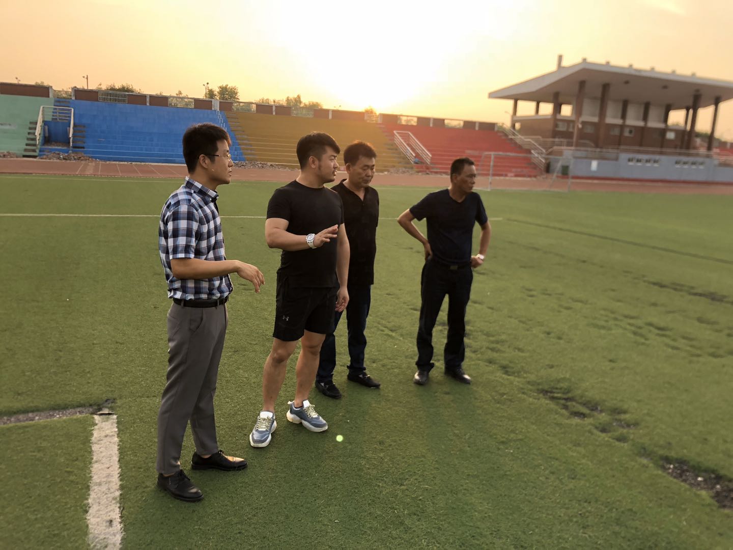 校领导视察操场情况