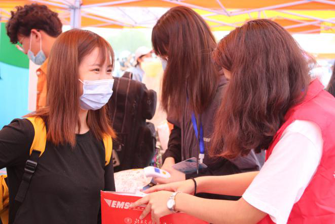 受疫情影响,家长不能陪同进校,为保证新生健康顺利报到,米乐官网教职工自愿结成“海滨教职工爱心车队”帮助学生运送行李,海滨食堂也无偿为米乐官网学生准备姜汤驱寒。迎新志愿者们在校门口陈列排排帐篷,为新生搭建起校园咨询处和行李寄存处,他们组织学生间隔排队,依次进行手物消毒、身份及健康绿码核验、体温检测等检查流程。忙碌的学生志愿者用最关切的问候、最贴心的服务、最灿烂的微笑为每一位到来的新生传递暖心关怀,让新生体会到家的温暖。