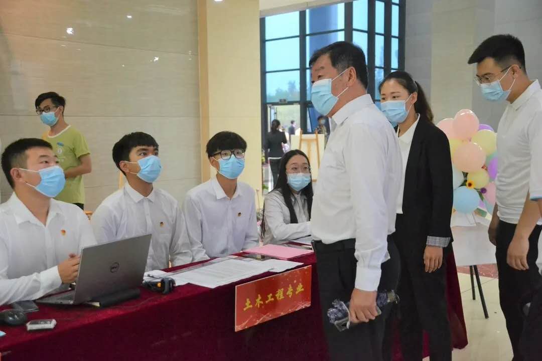 在迎新服务现场,我校领导亲临现场看望新生,向他们表示热烈欢迎,嘱咐新生们好好休息,认真、积极参加学校开展的入学教育,以饱满的精神状态投入到新学期,尽快融入海滨大家庭;同时,校领导也向迎新现场工作人员询问新生报到情况,对现场的迎新志愿者进行慰问,叮嘱同学们做好健康防护,配合学校做好常态化疫情防控的各项工作。