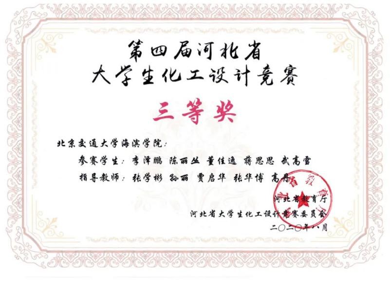由教育部高等学校化工类专业教学指导委员会、中国化工学会、中国化工教育协会主办,山东理工大学承办的“齐鲁石化杯”第十四届全国大学生化工设计竞赛华北赛区(北京、天津、山东、河北及内蒙古)决赛圆满结束。经过各路角逐,米乐官网“五碳糖烷”队荣获河北省二等奖;“酯荫有你”队荣获河北省三等奖,“生灵涂碳”队成功晋级华北赛区的总决赛,并荣获全国二等奖。