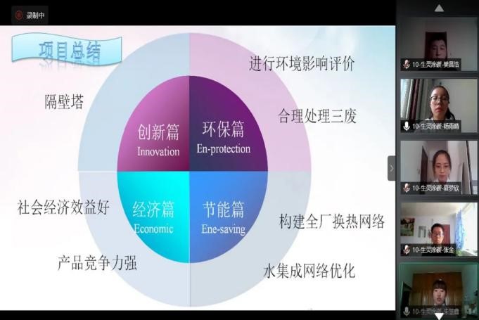备赛期间,米乐官网化学工程系教师精心组织,动员考核,让学生通过线上开展学习、交流、协作,不断攻克可行性分析、工艺设计、仪表自控设计、设备选型设计、厂区布置、经济概算、安全与环保等环节中遇到的问题。化工系学生虽身居各地,但毅然统一战线、互相监督。在比赛过程中,他们沉着参赛,与评委老师积极探讨,相互学习交流,积累经验。