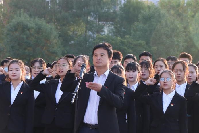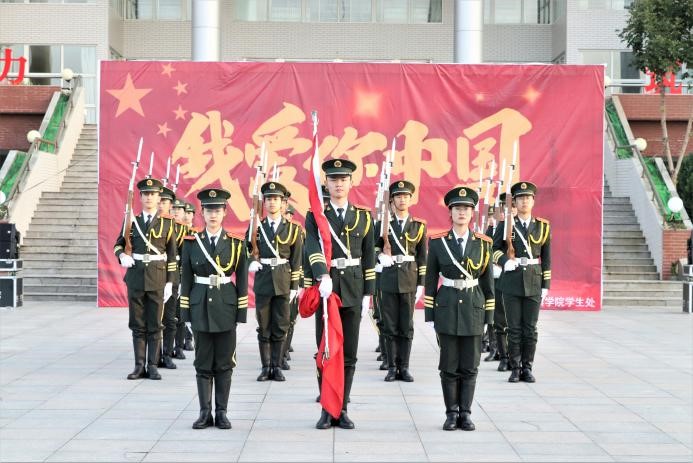 9月30日上午7时,米乐官网隆重举行以“国旗在我身边”为主题的升旗仪式,为中华人民共和国成立71周年献礼,共同祝愿伟大的祖国更加繁荣富强。米乐官网党委副书记魏炜、各院系副院长(副主任)、学工办主任受邀出席本次升旗仪式,全体2020级新生辅导员老师及部分学生代表参会。学生处教师王达主持此次升旗仪式。