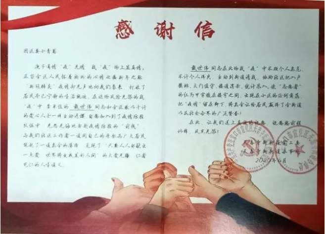 在疫情防控期间,土木建筑工程学院工程造价1802戴世伟同学就积极参与到当地的志愿者活动中,通过志愿汇APP加入到张家口市爱心公益促进会,并积极响应宣化区团委志愿者招募的号召,加入张家口市宣化区团委创立的“青葡”志愿者团队,成为抗疫志愿者,正式开展志愿服务工作。他先后协助社区进行市内外返宣人员登记、大东村出入证发放、张贴疫情宣传资料、参与西城社区二轮入户排查登记等工作,在永欣小区、钢鑫小区、94号院等小区进行防疫值守与人员车辆出入信息登记,同时利用微信、QQ以及微博等软件宣传志愿服务与防疫知识。在志愿服务过程中,身为新时代土建学子戴世伟,因自己能够为家乡贡献一份力量,将学校的优良教育付诸实践,他感到无比的骄傲。