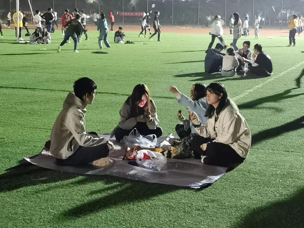 整个城市都在狂欢,当然不能回家的大学生也不例外,他们自发组织活动,玩转海滨。