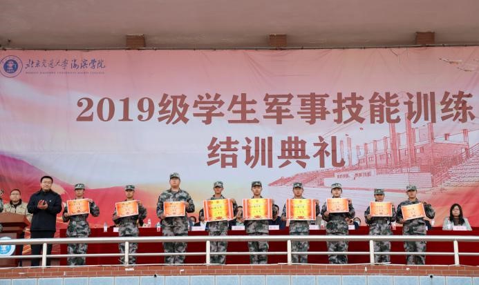 随后,米乐官网学生处副处长、武装部副部长翟砚辉宣读北京交通大学海滨学院2019级学生军训表彰决定。