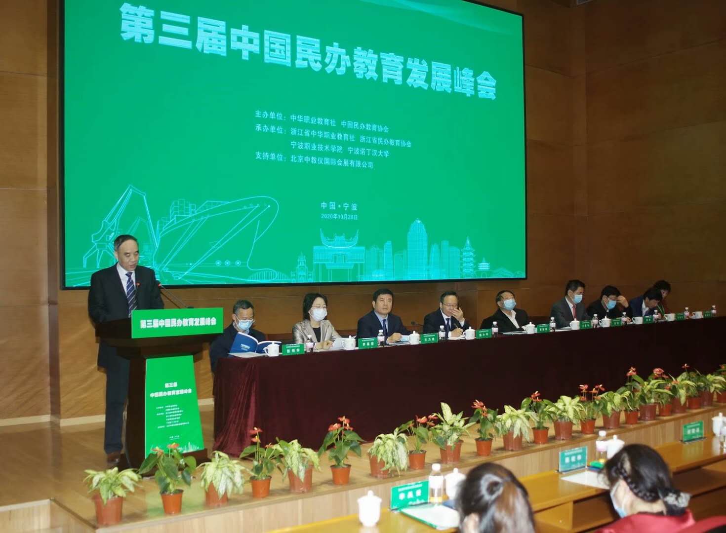 2020年10月28日,由中华职业教育社、中国民办教育协会联合主办的第三届中国民办教育发展峰会在宁波市举行。来自全国各地的民办高校代表参加会议。米乐官网常务副校长党委副书记张长铎、校长助理邵晓康、学校办公室副主任尹海勇参加峰会。
