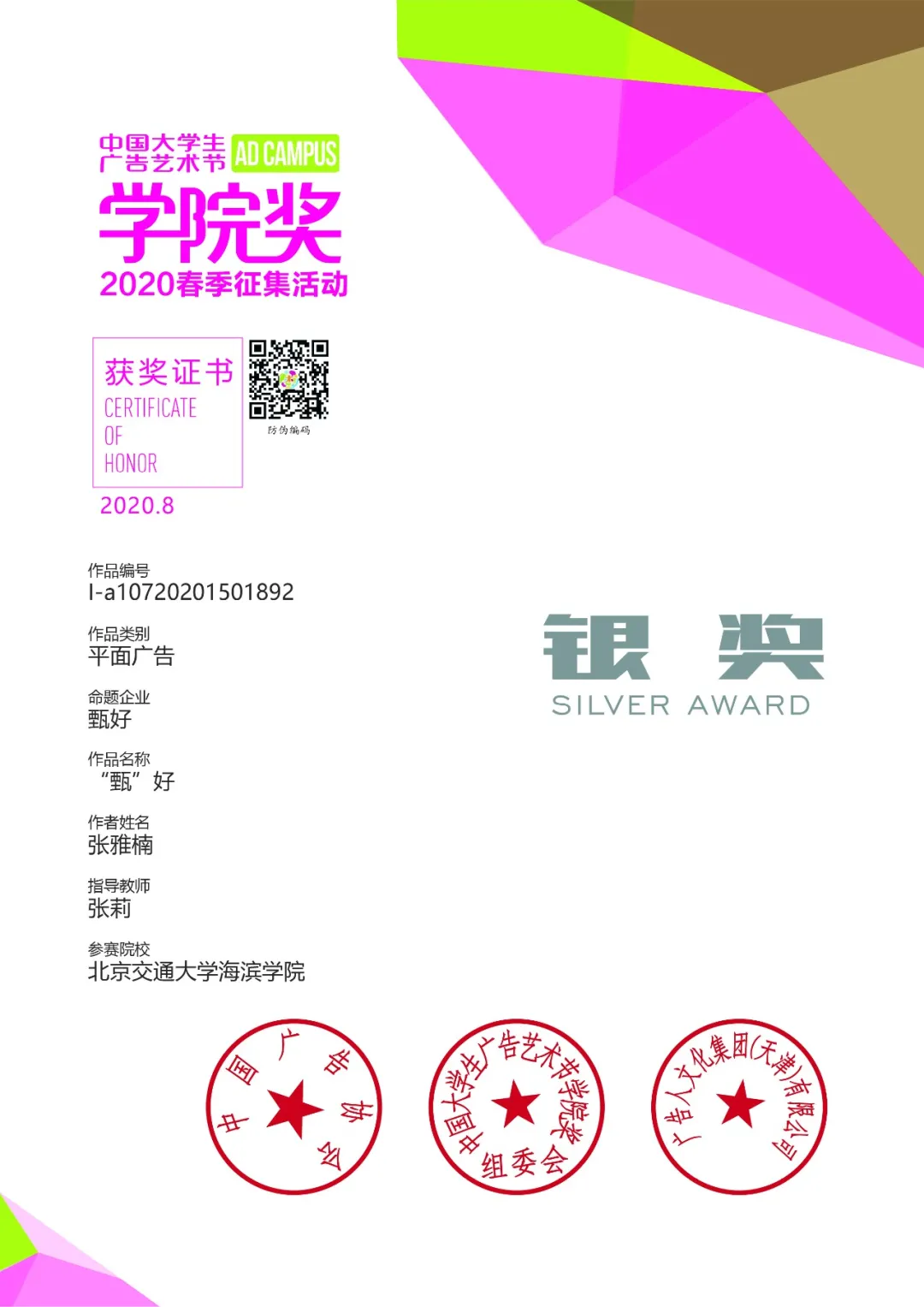 艺术学院的教师在备赛期间,给予学生专业的指导,使同学们的作品日趋精细,为此次获奖奠定了良好的基础。米乐官网教师也将以此为契机,强化课堂教学,努力提升学生们的创新实践能力,为米乐官网增添更多的荣誉。