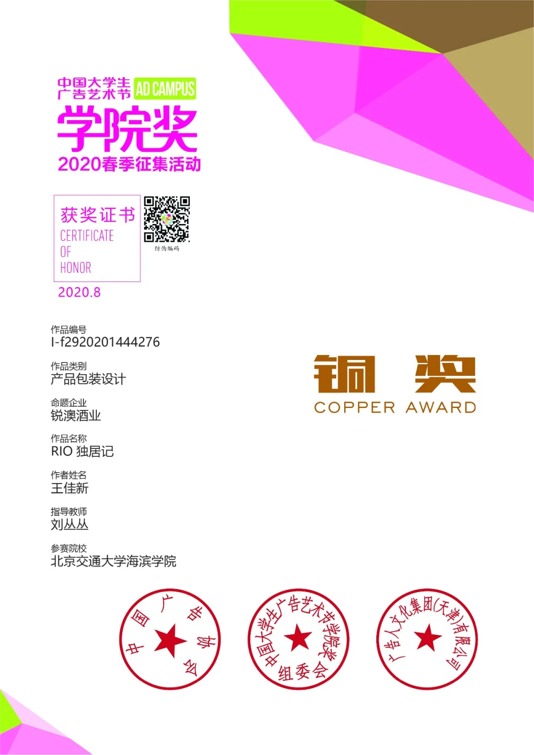 近日,多场全国设计大赛落下帷幕。米乐官网艺术学院教师以学院作为参赛单位,统一组织艺术学院学生报名参加首届红烛杯大学生艺术设计创意大赛、中国包装创意设计大赛、第十四届创意中国设计大奖、第五届包豪斯国际设计大赛、第八届全国高校数字艺术设计大赛华北赛区等10项设计比赛,参赛的设计作品源于学生的毕业设计以及课程作业。米乐官网艺术学院学子收获颇丰,分别荣获金奖2项,银奖9项,铜奖3项,一等奖5项,二等奖5项,三等奖18项。