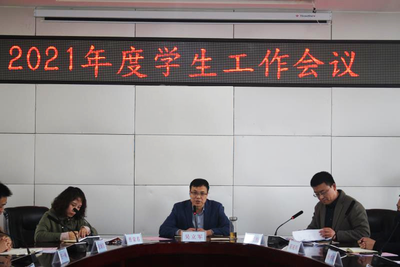 为进一步推进米乐官网学生工作有序开展,使学生工作质量再上新台阶。4月2日,米乐官网在行政楼B512召开2021年度学生工作会议。米乐官网校长助理吴立军、学生处处长王庆松、学生处副处长(校团委书记)曹蒙春、学生处副处长翟砚辉、各学院行政副院长出席会议。各学院团委书记、全体辅导员老师及学生处全体教师参会。学生处副处长(校团委书记)曹蒙春主持会议。