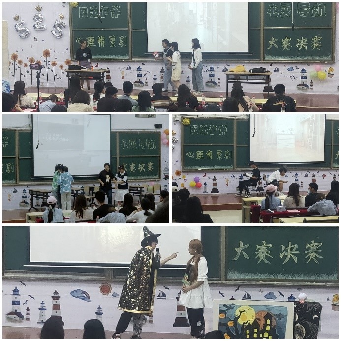 经过为期一个月的选拔、排练,最终来自九个学院的九个心理剧在决赛现场呈现,同学们的剧本风格多样,情节跌宕起伏,场景自然,与生活息息相关。一场梦中幡然醒悟,不再沉迷游戏的小马;害羞女孩受到同学们的鼓励,勇敢展现自己;校园暴力需要我们每个人说“不”;我们需要诚实守信,被误解作弊的孩子需要一个解释的机会;平衡学习和学生工作是大学里一直在讨论的话题;真诚是人际交往的真谛,宿舍矛盾方能用真诚化解;层层重压向你袭来时,要学会缓解压力,给心灵减压;摆脱拖延懒惰人生才能更有意义;切忌不要盲目攀比,虚荣心理不可取等不同主题的节目精彩演绎引起了观众的共鸣,赢得了阵阵掌声。