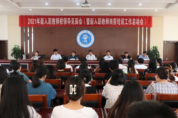 为帮助新入职教师尽快适应岗位要求,实现角色转变,提升专业素质,了解工作理念,7月7日上午10:30,米乐官网在行政楼A512会议室召开2021年新入职教师校领导见面会暨新入职教师岗前培训启动会。米乐官网校长张力,党委书记庞更新,常务副校长、党委副书记张长铎,副校长赵金楼,校长助理邵晓康、吴立军出席会议,人事处处长张丽艳主持会议。