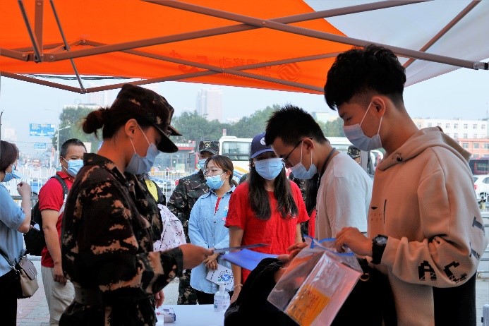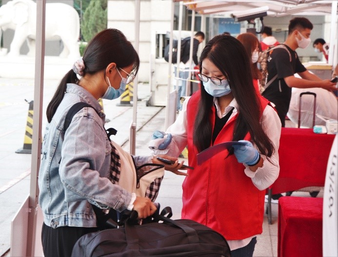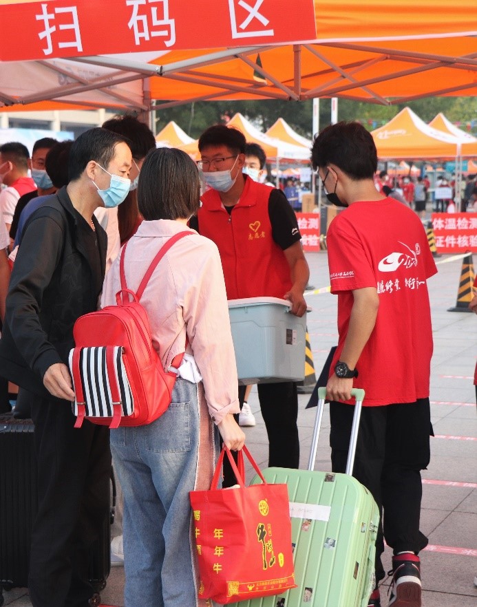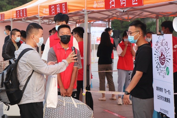安全迎新,疫情防控高标准。报到新生全程佩戴口罩,配合测温,保持距离,积极配合防疫工作。