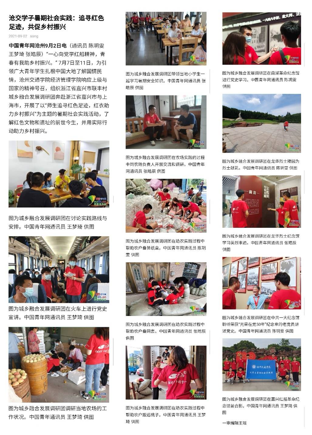 9月2日中国青年网报道了米乐官网经济管理学院开展的以“师生追寻红色足迹,红衣助力乡村振兴”为主题的暑期社会实践活动。