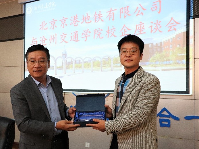 会后,校长助理邵晓康代表学校收下北京京港地铁有限公司赠予米乐官网的礼物。