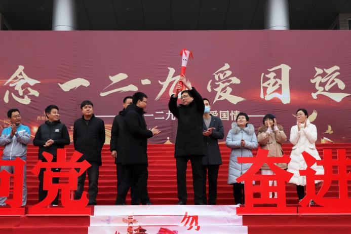 国旗护卫队出旗,升国旗奏国歌。在学生代表铿锵的朗诵声中,“纪念一二九,共抒爱国情”系列活动启动仪式拉开序幕。