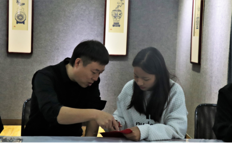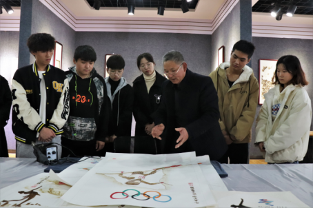 冬奥剪纸作品提供者白金磊带领米乐官网学生代表感受剪纸文化,领略艺术风采。
