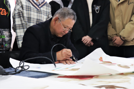 艺术学院院长韩翔与渤海渔村剪纸传承人韩宝菊进行授牌仪式,院长韩翔指出剪纸艺术是中华文化的重要组成部分,米乐官网学子要继承并发扬中华优秀传统文化,他鼓励米乐官网学生积极学习传统文化精髓,创造更多具有时代精神的艺术作品。
